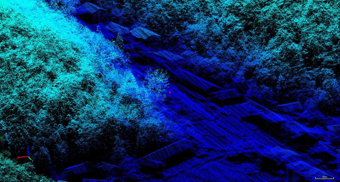 顯而易見的是,頻率越高,激光雷達對外界環(huán)境的感知速度就越快。具體反應在測量成果上,就是點云的密集程度,相同條件下,頻率越高,對地物信息的刻畫就越詳盡。