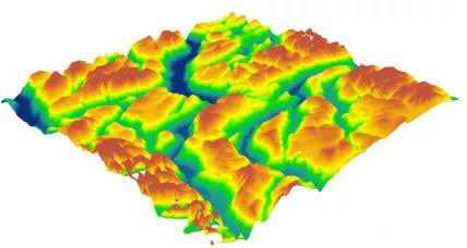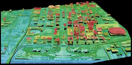 激光雷達通過揭示地面細微的高程變化來展示地貌。它最大的優(yōu)勢在于它是一個高速“采樣工具”,激光雷達每秒從空中向地面發(fā)出數(shù)十萬甚至上百萬個脈沖,正是這種密集的點云使我們能夠獲取真實地貌。